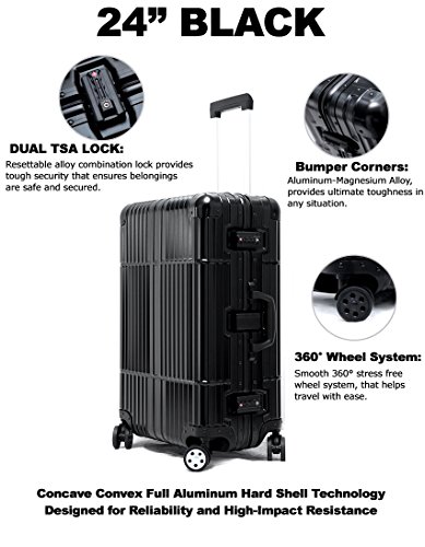 -. Brand : Newbee Fashion -. Department : unisex-adult (lage only) -. Feature : Design - Made from 100% Aviation Series 5 Grade Aluminum-Magnesium Alloy, a very lightweight and durable material. Fully lined interior with multi-use organizational pockets make it easy for packing clothes. Designed to provide strength, flexibilty and capacity, light performance with top quality security. / Security - Ultra protective secruity frame made from the toughest materials paired with integrated TSA Approved Dual Combination Locks, for the ultimate security. / Body Dimensions: 24"(H) x 16"(L) x 10"(W) / Overal Dimensions: 26.25" (H) x 16"(L) x 10"(W)l / Net Weight: 11 lbs -. ProductGroup : Apparel -. ProductTypeName : LAGE -. Title : Cloud 9 - All Aluminum Luxury Hard Case Checked 24" Durable with 360 Degree 4 Wheel Spinner TSA Approved