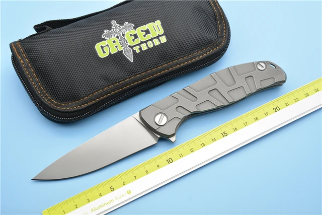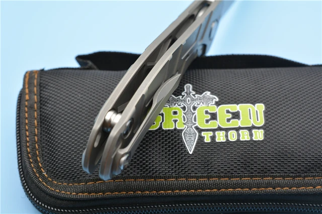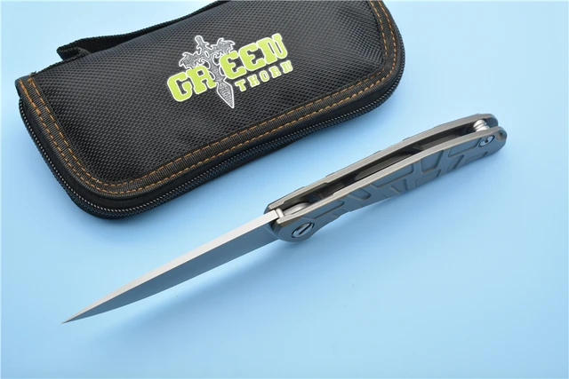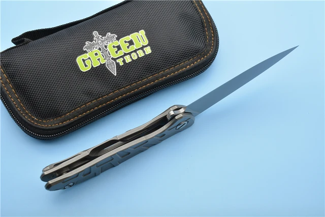| [해외] 녹색 가시 F95 볼 베어링 접는 칼 D2 블레이드 탄소 섬유 티타늄 핸들 캠핑 사냥 야외 도구 |