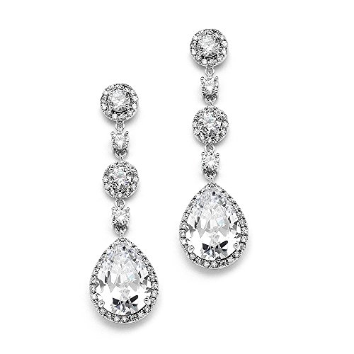-. Title : Mariell Platinum Plated Cubic Zirconia Dangle Earrings for Brides or Weddings with Pave Pear-Shaped Drops