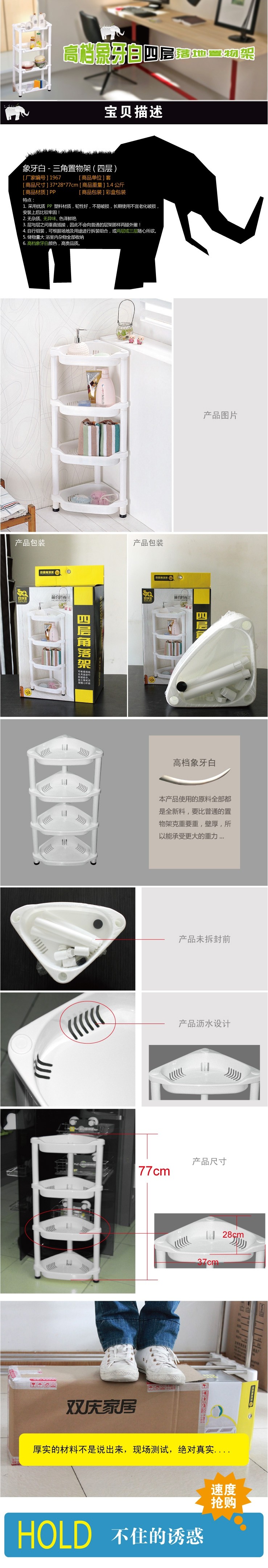 Name of commodity: double layer four corner shelf / debrisstorage rack (1967) brand: double Home Furnishingmaterial: ABS+PVC weight: 1.176kg packing: Carton Size:packing size: 26*17.5*37CM