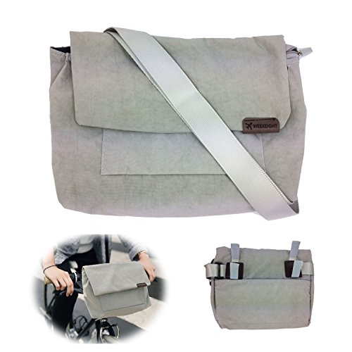 -. Feature : It adopts high-density waterproof polyester and nylon material, solid and durable. / Approximate dimensions: 27 x 7 x 18 cm (long, wide, high). Weight: 0.25 kg. It's soft and easy to be fold and rolled up. / The front of the bag is closed with a magnetic flap. Under the flap there is a pouch and a large zippered section, inside the zipper there're 2 small compartments, 1 mesh pocket, and 2 pen holders. On the rear there's a zippered pocket with 4 card slots and 1 small pouch. / Highlight: there're 2 velcro tapes on the rear to hand on the handlebar or front frame of your bike, or to fasten the strap when you don't need it. / Comfortably fits an 9.7" iPad, cellphones, wallets, water bottles, umbrella and other essentials. Perfect for hiking, camping, climbing, cycling, etc. It will come with a sticky card holder for smartphone.