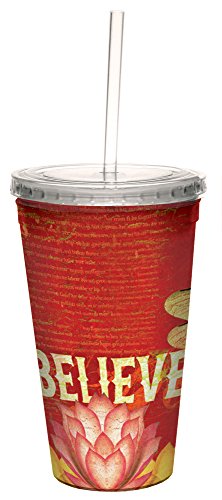 Tree-Free Greetings 35548 Angi and Silas Dragonfly Believe Double-Walled Cool Cup with Reusable Straw, 16-Ounce