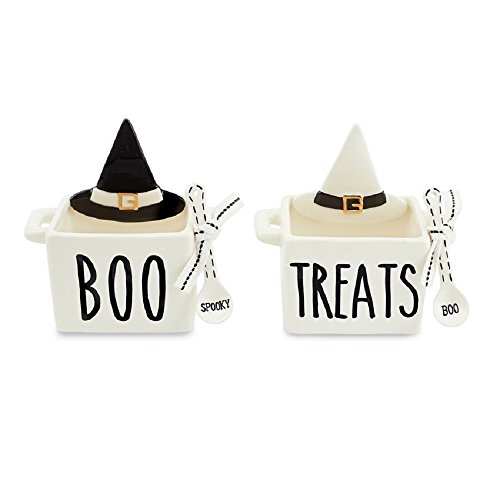 Studio : MP001 Publisher : MP001 Product Description 2-piece set. Ceramic candy caddy features debossed "BOO" or "TREATS" sentiment and layered witch hat icon on inner rim. "BOO" dish arrives with "SPOOKY" spoon and "TREATS" dish arrives with "BOO" spoon. Size: caddy 3" x 6" | spoon 4 1/4" 0