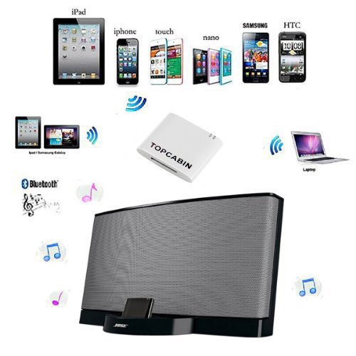 TOPCABIN Topcabin Wireless A2dp Bluetooth Music Receiver Adapter for Bose Sounddock Phillips Beatbox JBL and Other Dock Stations Nd 30-pin Ipod Iphone Dock Speaker (White)