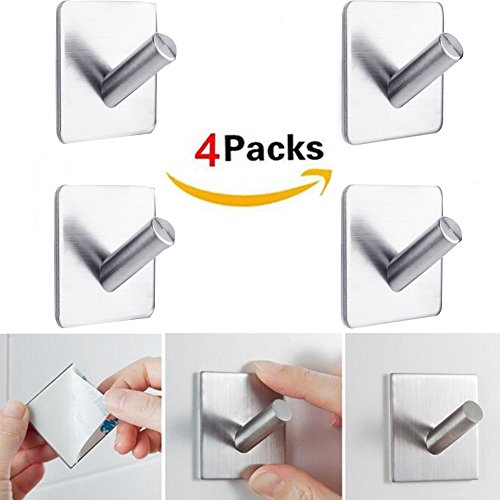 Towel Hook,3M Adhesive Hook 304 Stainless Steel Inclined Hook Towel Hanging, Key hook, Living Room, Bathroom,Waterproof Strong Adhesion Weight-Bearing 5KG
