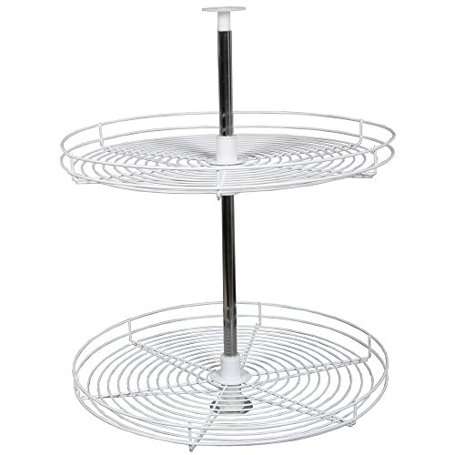 -. Feature : Shelves rotate independently on a 1 inch chrome telescoping post. / Full round wire shelving with a 28 inch diameter. / Round shelf design is ideal for fitting in most any cabinet space. / Shelf mounting system designed to allow unlimited shelf positions along the post. / Post height is adjustable for cabinets measuring 25 1/2 inch to 31 1/2 inch tall.