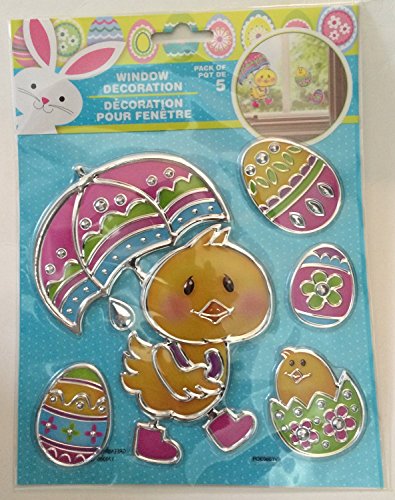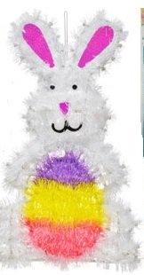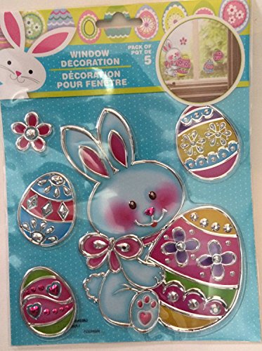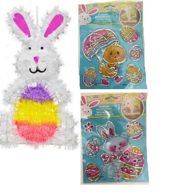3 Pc Easter Bunny Themed Window Stickers and Tinsel Bunny Face Decoration Bundle Includes 1-14" Tinsel Bunny Head, and 2- Easter Themed Foil Window Stickers