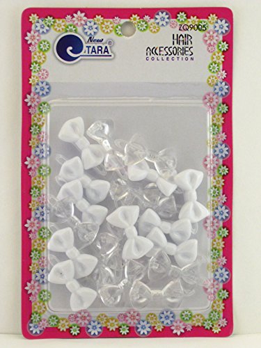Product Description Tara Girls plastic self-hinge mini bow hair barrettes are designed to hold young girls hair in place. The pack features an assortment of shades of Clear White to match many outfits. 0