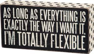 Primitives By Kathy Box Sign, "As Long As Everything Is Exactly the Way I Want It, I Am Totally Flexible"