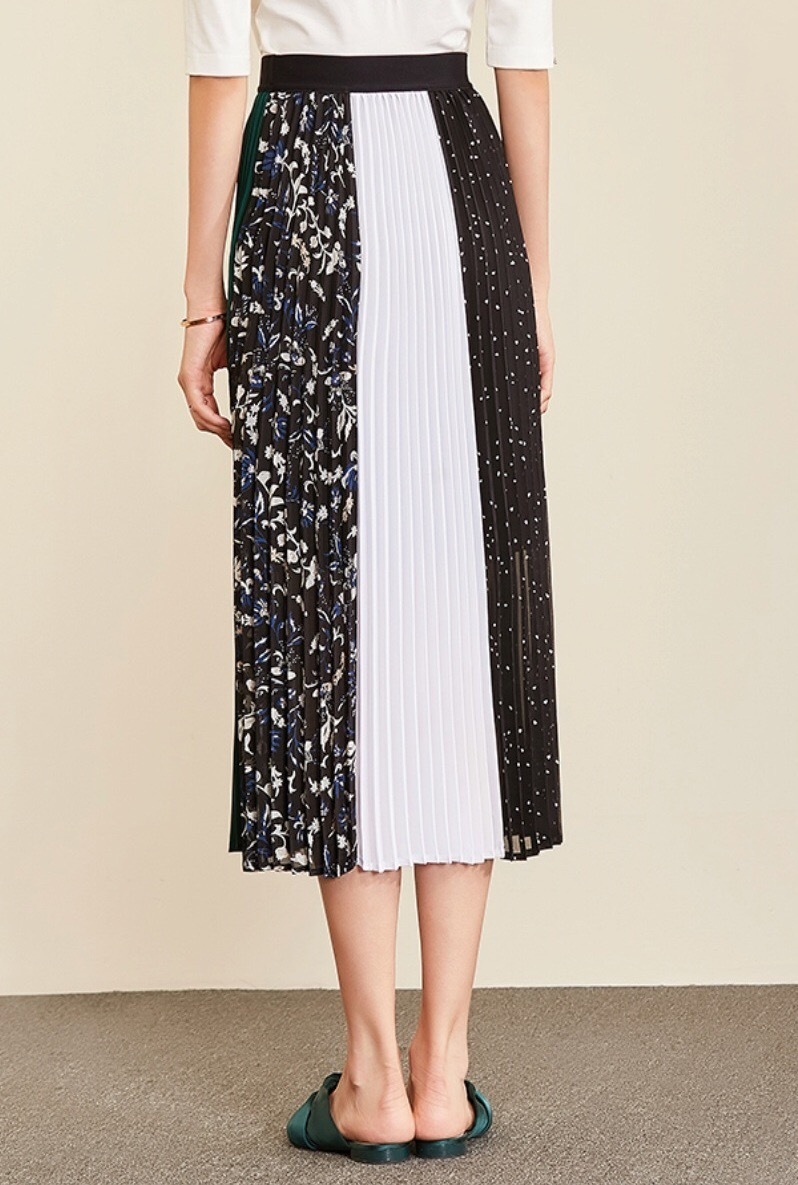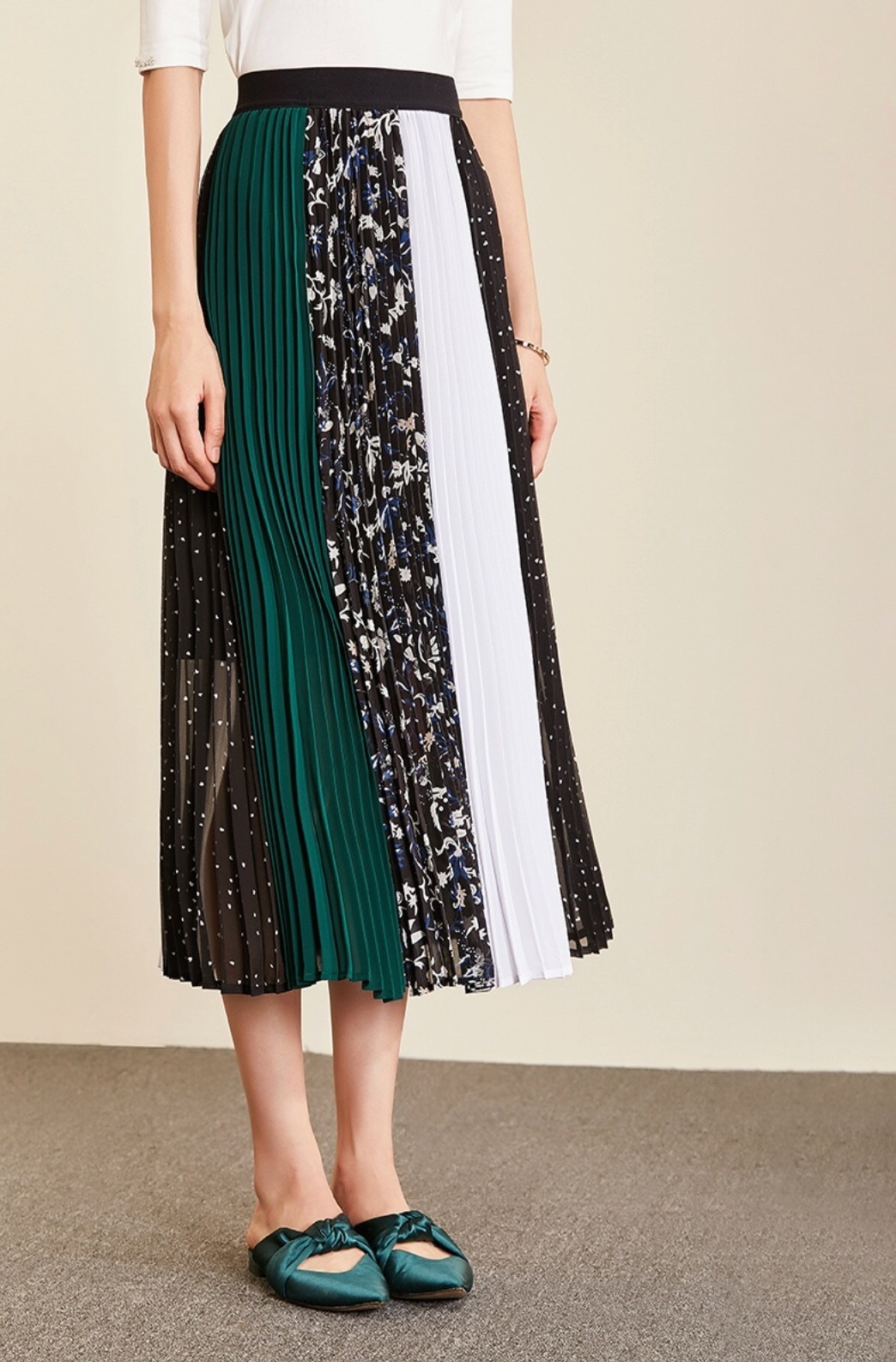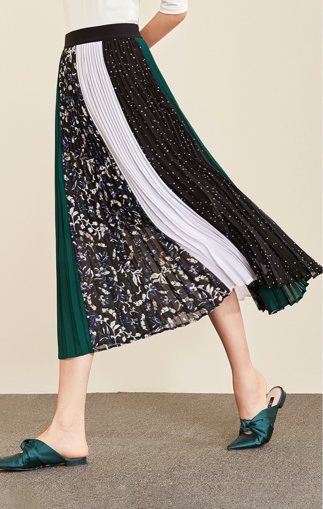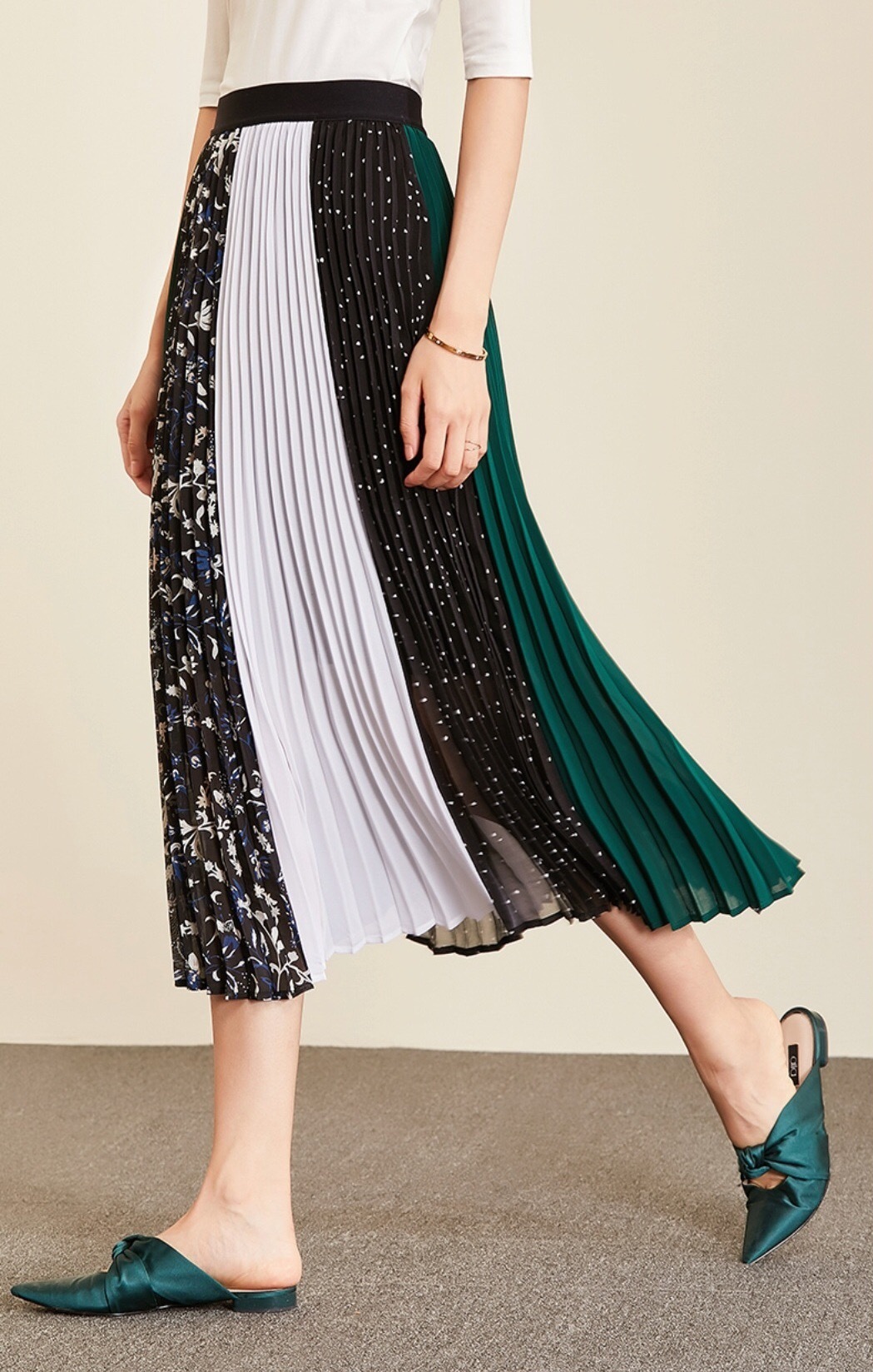 異色の組み合わせが印象的なロング丈プリーツスカートです。