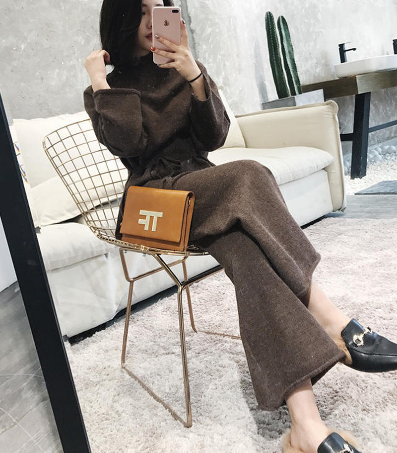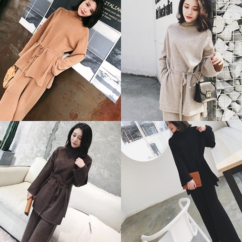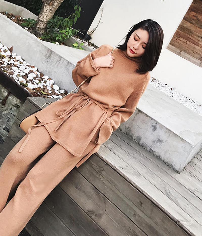 ♢ポイント♢ 秋冬シーズンにぴったりなあったかニットセットアップです。 ロング丈パンツで大人っぽく決まります☆