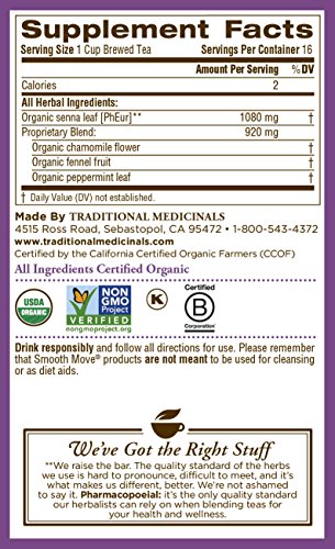 -. Title : Traditional Medicinals Organic Smooth Move Chamomile Tea, 16 Tea Bags