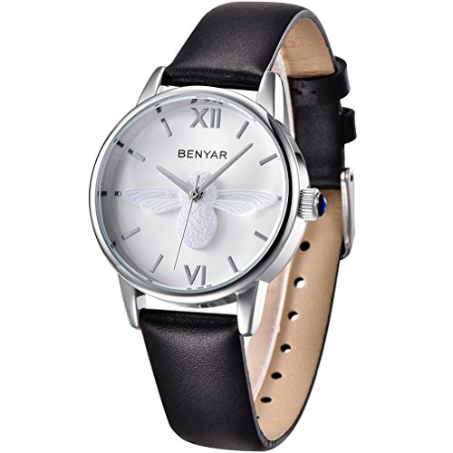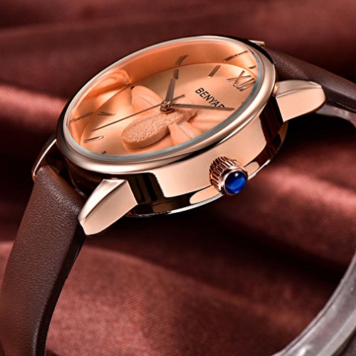 QUALITY AND COLORFUL LEATHER BAND : Scratch Proof Mineral Glass, Cute Bee Design, Black / Brown / Green / Pink Genuine Leather Band , Bring You Cute, Sweet and Fashion Feeling.