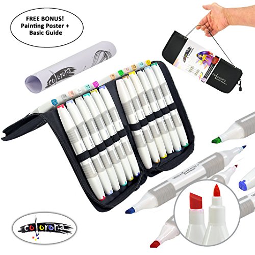 24 Alcohol Markers Professional Art Set - Double Ended Blendable Alcohol Based Ink Colors with Fine and Chisel Tip. Perfect for Artists Beginners Adults and Kids – Marker Set + Bonus Carrying Case