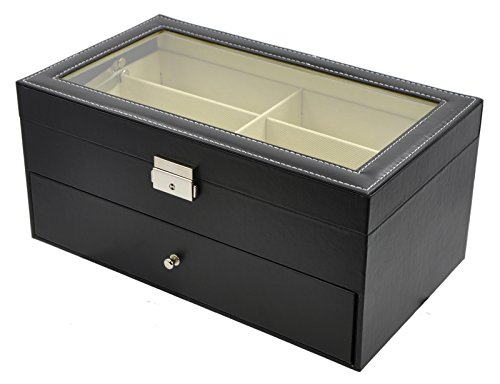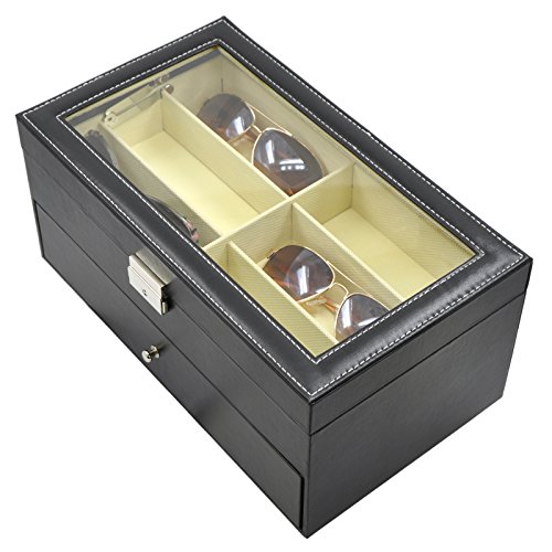 Origia PU 12 Grids Glasses Eye-wear Sunglasses Box Storage Case, Clear Glass Top, Black