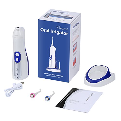 Ovonni Oral Irrigator Water Flosser Cordless Rechargeable Dental Care with 4 Modes and High Capacity Water Tank IPX7 Waterproof Teeth Cleaner with 2 Jet...