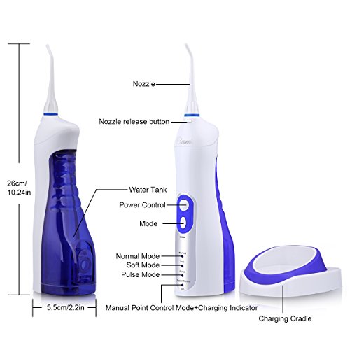 HIGH PRESSURE WATER COLUMN - More effective in removing bacteria and eliminating the surface stains and slit between the teeth. 360°rotating nozzle provides deeply cleaning for plaque control and easy to reach the hard clean areas that conventional toothbrushes may struggle to reach