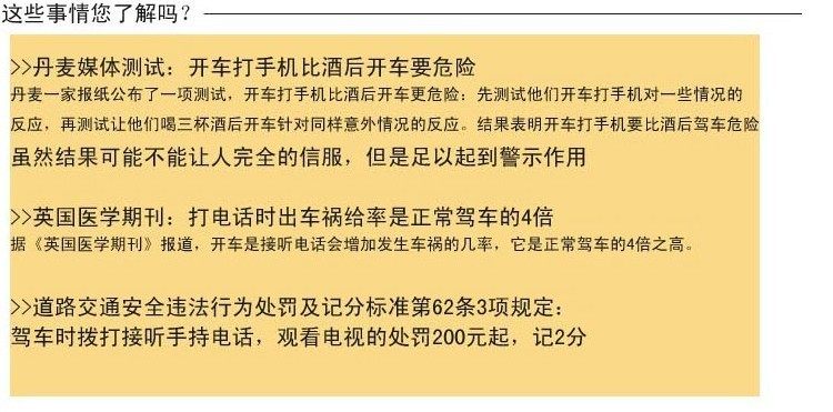 Test results Berkshire England Institute of Transportation announced that the use of cell phones while driving, the reaction speed of the human brain drunk driving slower than 30% in Japan, motorists and road traffic accidents in the use of mobile phones in the probability of up to 27.3 %, much higher than drunk driving accident is truly the first killer! Bluetooth hands-free, secure life for you and your family to provide effective protection.