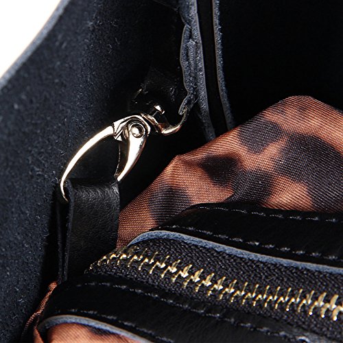 - Feature : Split cow leather / Measures :19.69"(L) x 5.91" (w) x 12.20" (H) Hand height:10.63" Pleasre accept 1"-1.5" error / Gold accessories have bright color,and really resistance to abrasion.There is no lining and no zipper inside but a son bag. / Closure:Magnet.Internal structure:The main bag,mobile phone bag,documents bag,camera bag,son bag / Please allow little color difference due to different camera or light environment