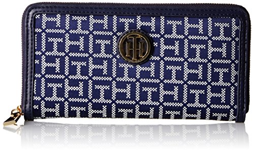 Zip-around clsoure. Exterior features brand hardware detail at front. Lined interior flaunts center zip pocket, multiple slip pockets, and eight card slots. Imported.