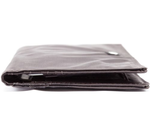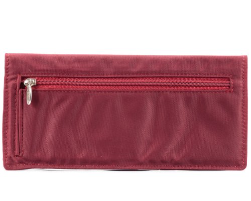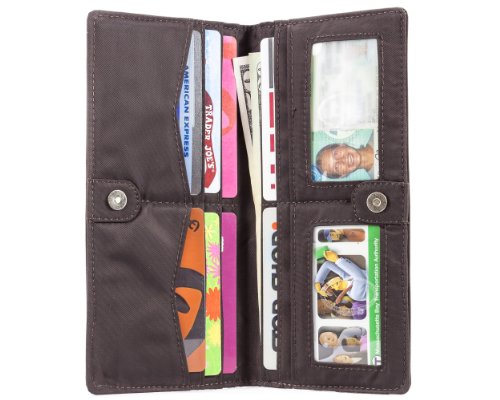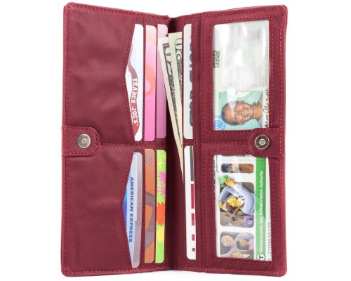 - Feature : Ultra-thin checkbook wallet is roomy enough to accommodate 40 thick plastic cards, checkbook and cash / 2 general billfold/checkbook areas, 8 extra-wide credit card pockets, 2 ID pockets / Pockets lined with rubbery coating to prevent cards from sliding out / Constructed of thin, light and durable nylon microfiber; machine washable / Measures 7-1/2 x 3-1/2 Inch
