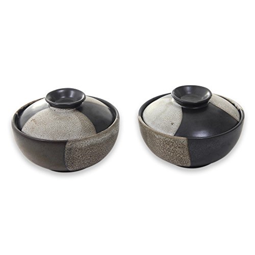 NOVICA 'Bold Contrasts' (Pair) Ceramic Lidded Bowls