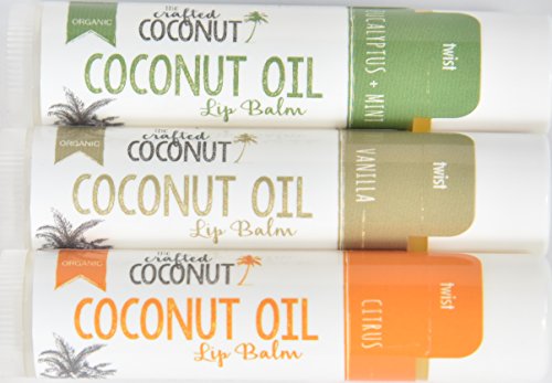 -. Title : The Crafted Coconut - Organic Coconut Oil Lip Balm TRIO - Eucalptus + Mint, Vanilla, Citrus with Vitamin E and Calendula