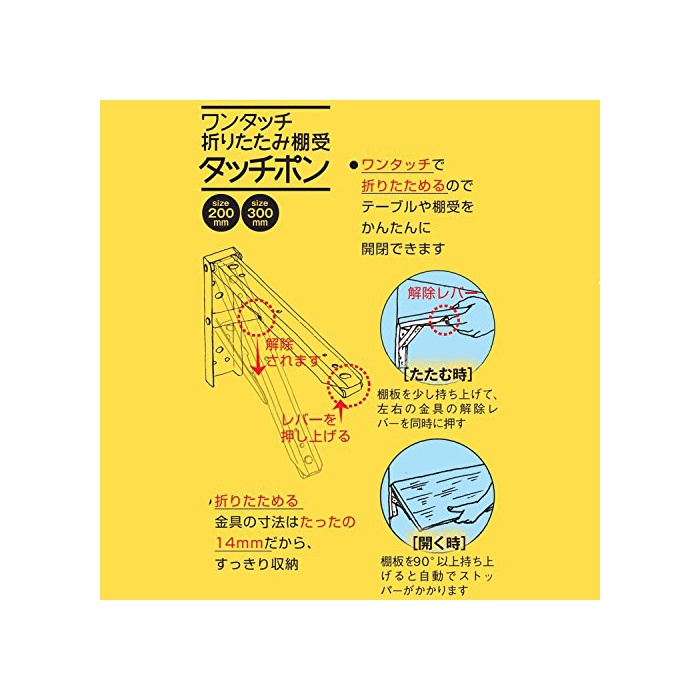 원본상품명:田邊金工業所 タッチポン ワンタッチ式 おりたたみ棚受 2本1組