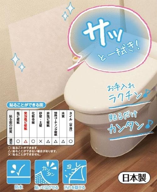 | トイレの壁を保護するシートです。簡単に貼れて、キレイにはがせます。2枚入なので、両サイドに貼っても、横長に使ってもOK!! |