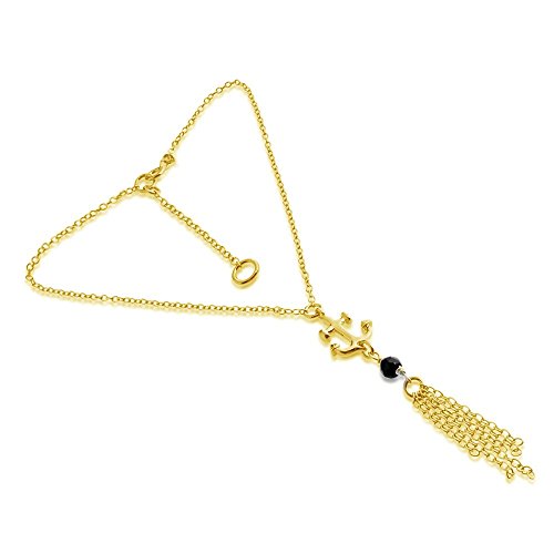-. Title : Azaggi Gold Plated Sterling Silver Handcrafted Anchor Anklet with Onyx