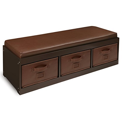 -. Title : 100% MDF,Wood made with Finished Espresso and comfortable Classy, durable, wipe clean, faux leather covering and Storage Bench with Espresso Bins