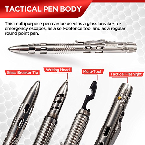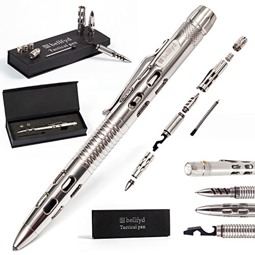 - MULTIPURPOSE - If you value multifunctional self defense pens that can get you out of trouble, BellFyd tactical spy pen is hard to beat. Featuring a sharp point, a LED flashlight, a wench, and a bottle opener, it is one of the best tactical pens on the market.