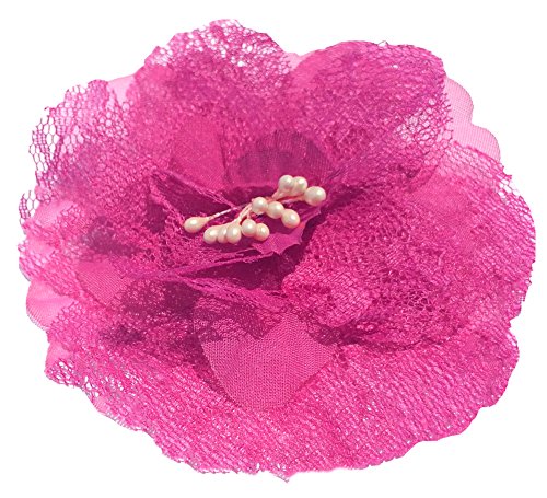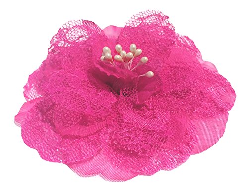 Cuteque International Victorian Lace Rose with Plastic Center Pearl Stamens, 4-Inch, Hot Pink, 3-Pack