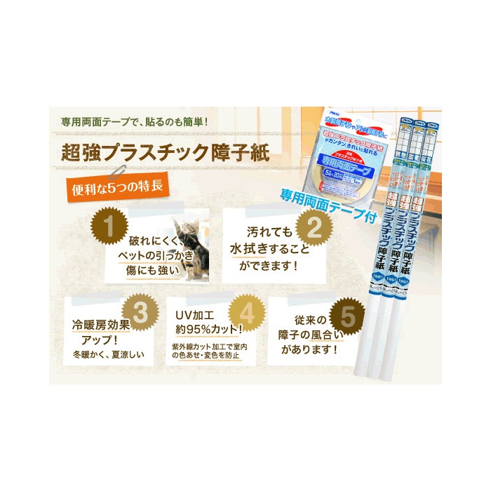 상품 사양 : 아사히펜 UV컷초 강플라스틱 장지문지&전용 양면 테이프 세트 깨지기 어렵고, 애완동물의 인# 굴상으로도 강한 장지문지입니다.냉난방 효과도 업!더럽혀져도 수 닦아 것 를 할 수 있습니다.자외선 컷 가공으로(약95%컷)고, 실내의 퇴색변색을 방지.종래의 장지문지의 촉감이 있습니다.