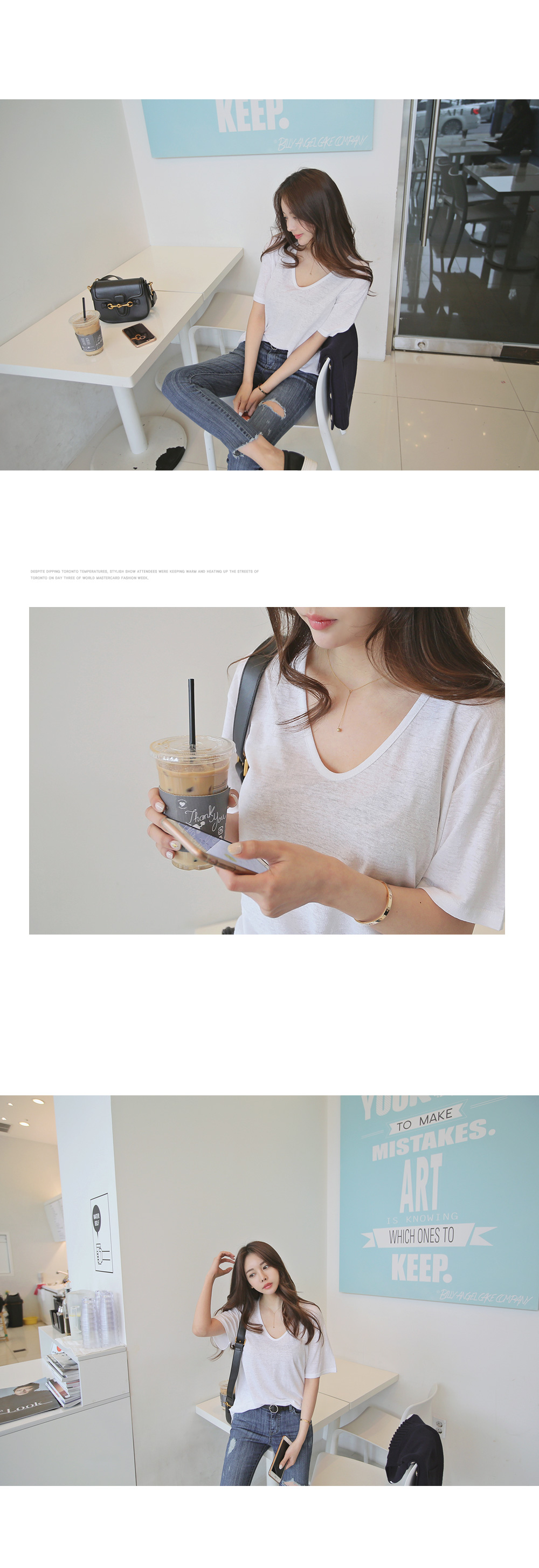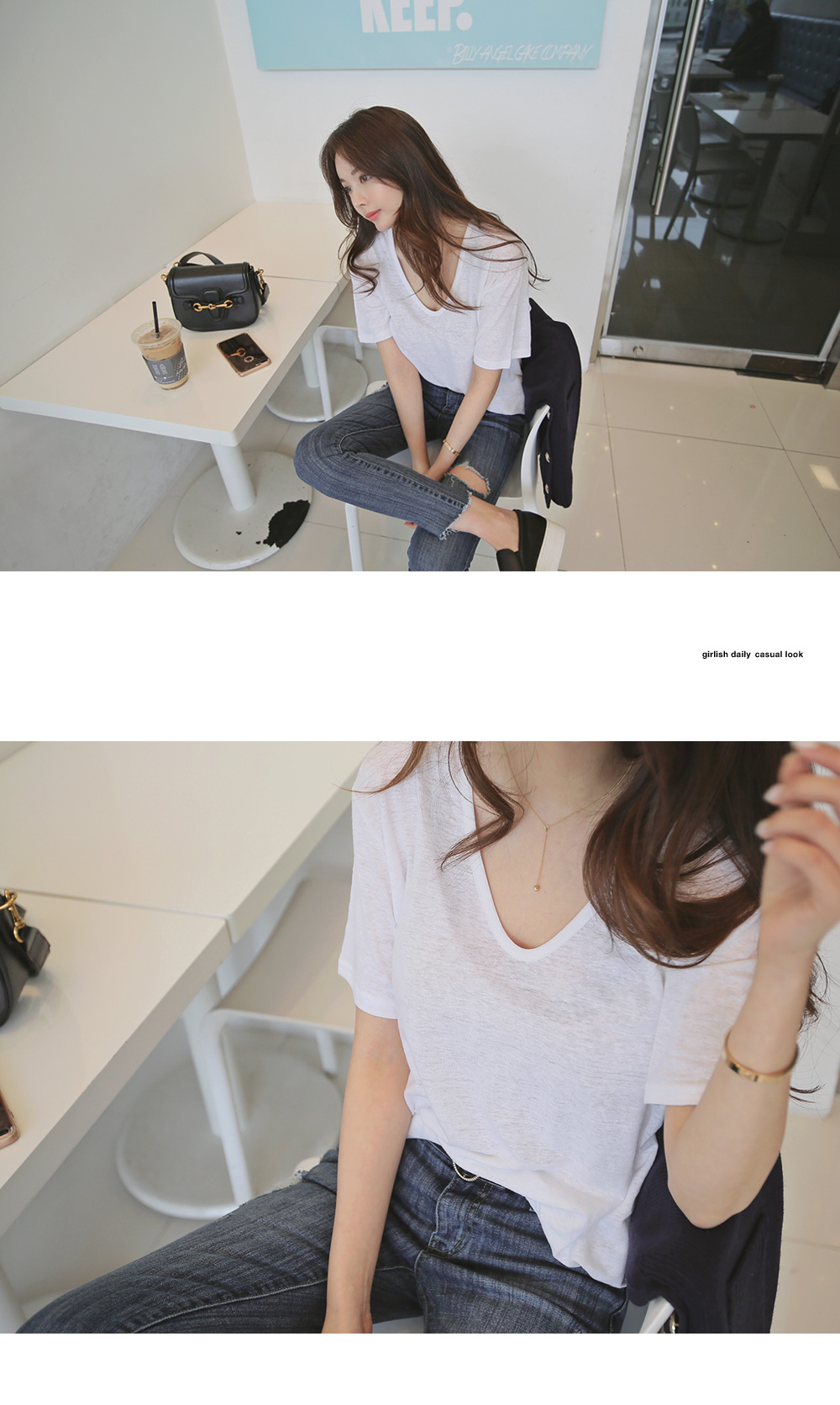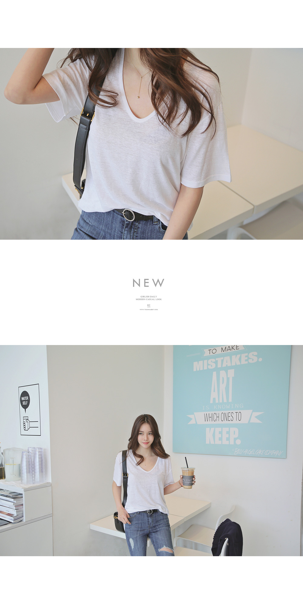 약간의 신축성으로 매일 입고 싶은 브이넥 티셔츠에요.