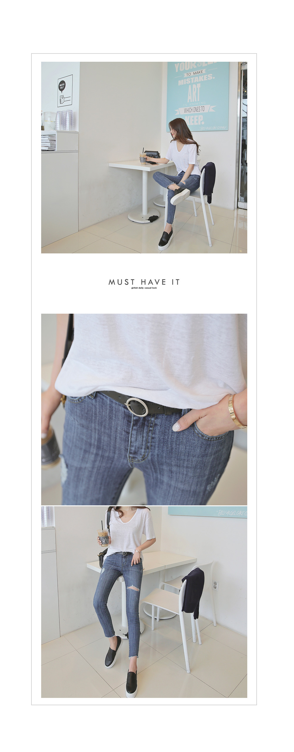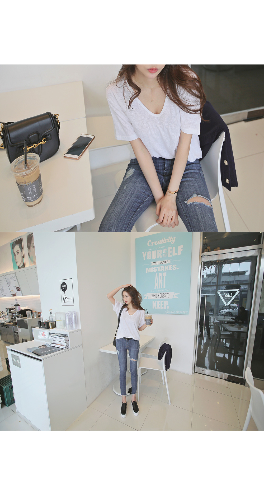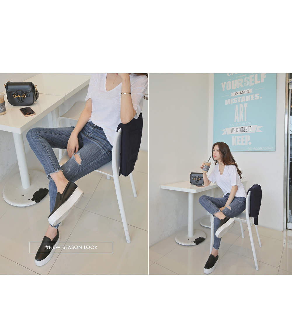 약간의 신축성으로 매일 입고 싶은 브이넥 티셔츠에요.