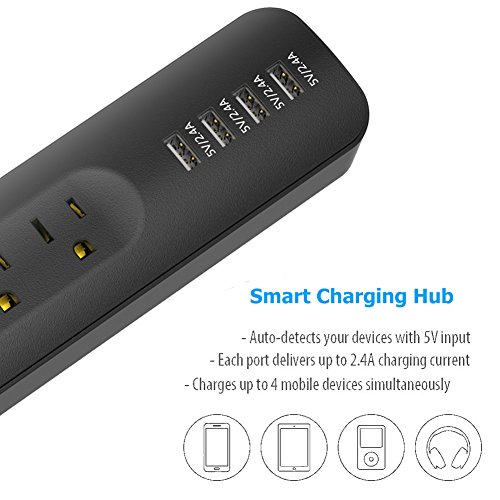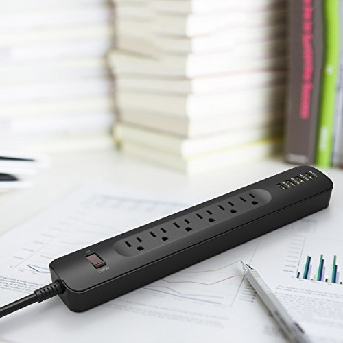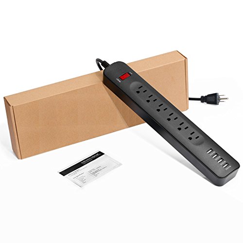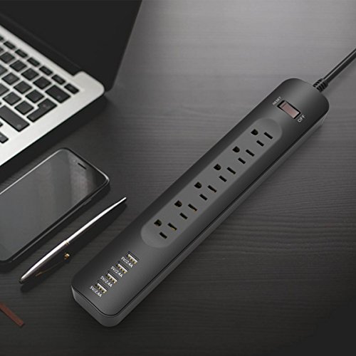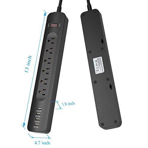 About?Firstbuy?Fire-resistance?Power?Strip:? Advanced?flame-resisting?materials,fireproof,waterproof,?high?temperature?resistant?6?AC 3-prong grounded power strip with 4 charging ports, it is perfect design for your home or professional workstation, the Firstbuy?advanced surge protector provides premium power protection for your electronics from power surges, spikes, and AC contamination. All-around?Protection:?Advanced?Built in?Protection?can?provide?the?most?complete?protection from?power surges, spikes, fire, impact or rust, and prevents dents and scratches.