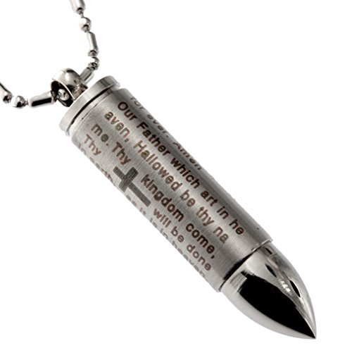 -. Binding : Jewelry -. Brand : R.H. Jewelry -. Color : Grey -. Department : womens -. Feature : High quality Stainless Steel Metal / Pendant Size: 50mm long / One 60cm (23.5") long fine stainless steel ball chain included / Laser engraved The Lords prayer Hollow Chamber -. ProductGroup : Jewelry -. ProductTypeName : FASHIONNECKLACEBRACELETANKLET -. Title : R.H. Jewelry Mens Stainless Steel Pendant
