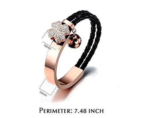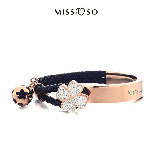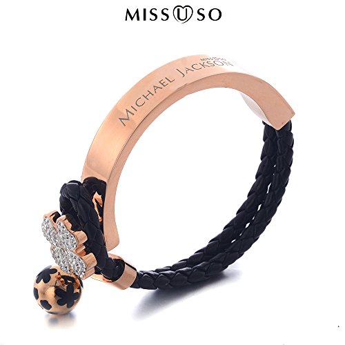 -. Title : Missuso Michael Jackson Memorial Style Braided Leather Cord Clover Elbow Titanium Steel Bracelet
