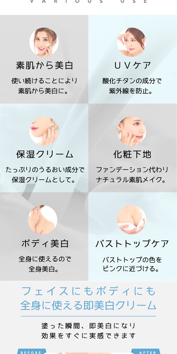 | 使用方法 | 適量を手に取り、顔、からだ全体にムラなくのばしてください。 |