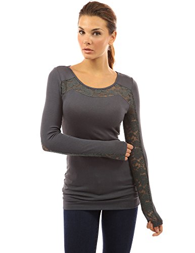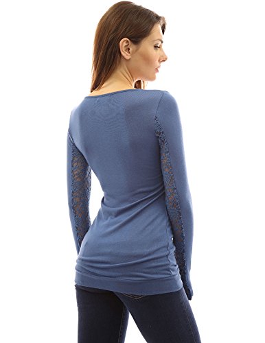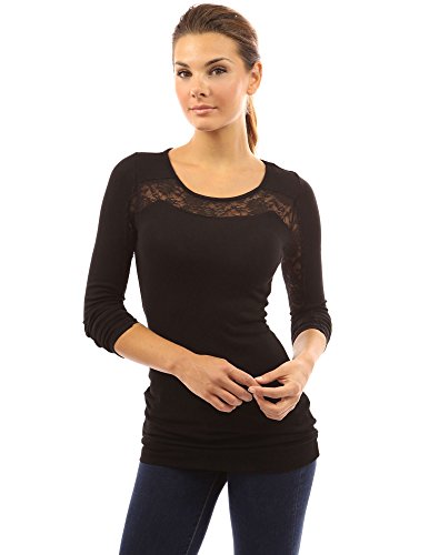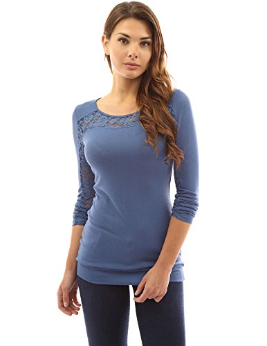 PattyBoutik Crew Neck Floral Lace Long Sleeve Casual Blouse Top. Model in pictures is 5 feet 8 inches (173cm) tall wearing size S.