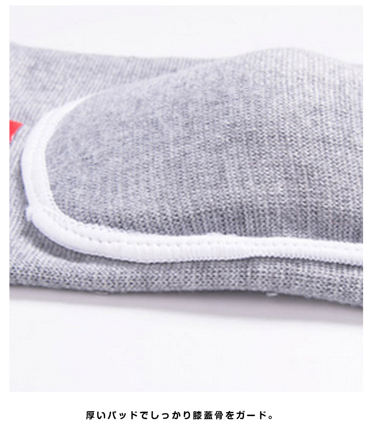 | 厚いパッドでしっかり膝蓋骨をガード。ひざの不安から解放される、爽快感を!敏感なひざ裏は薄くて柔らかく、ひざの曲げ伸ばしがスムーズ。 | |