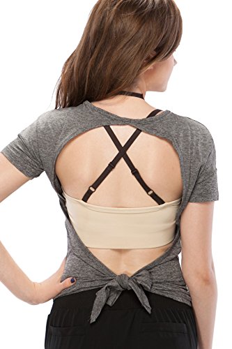 Sexy Yoga Workout Active Top Open Back Cowl Back Tie Back Lightweight Breathable T-Shirt for Sport Women by Fit Frenchie