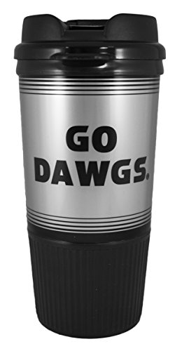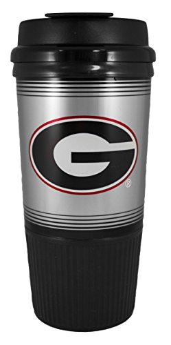 GameDay Novelty NCAA Georgia Bulldogs Insulated Platinum Gripper Travel Tumbler with No Spill Flip Lid, 16 oz