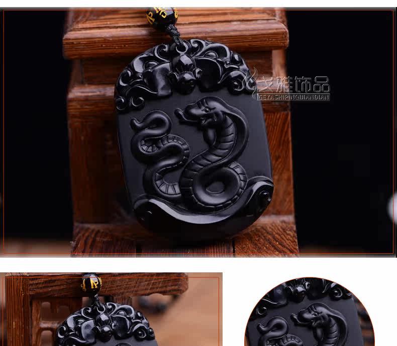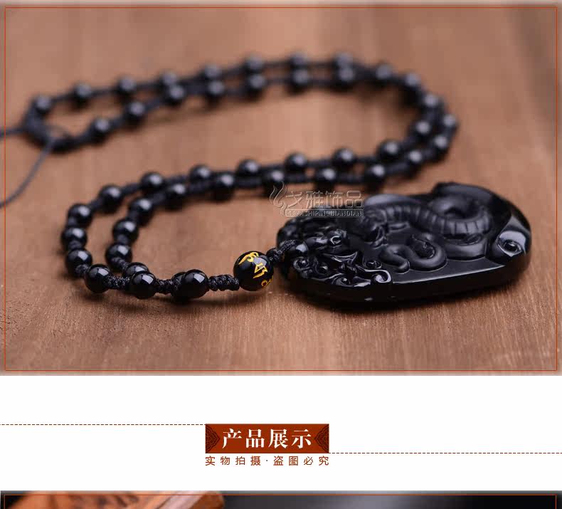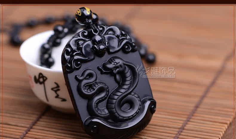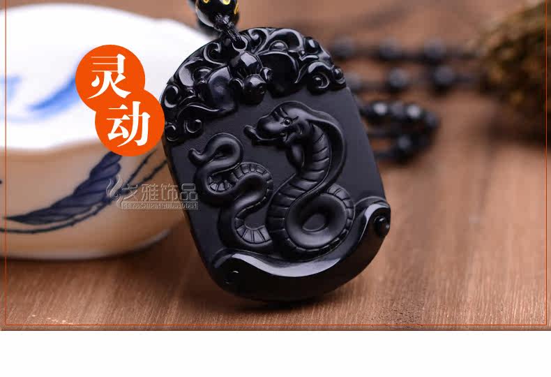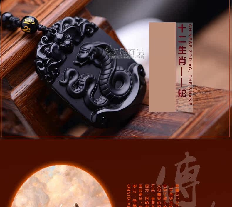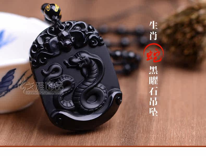 天然黑曜石生肖蛇吊坠十二生肖吊坠男女吉祥物朱雀献瑞