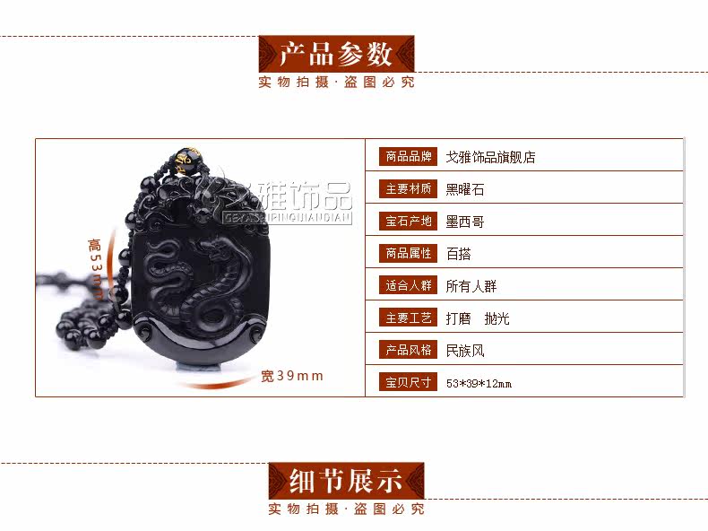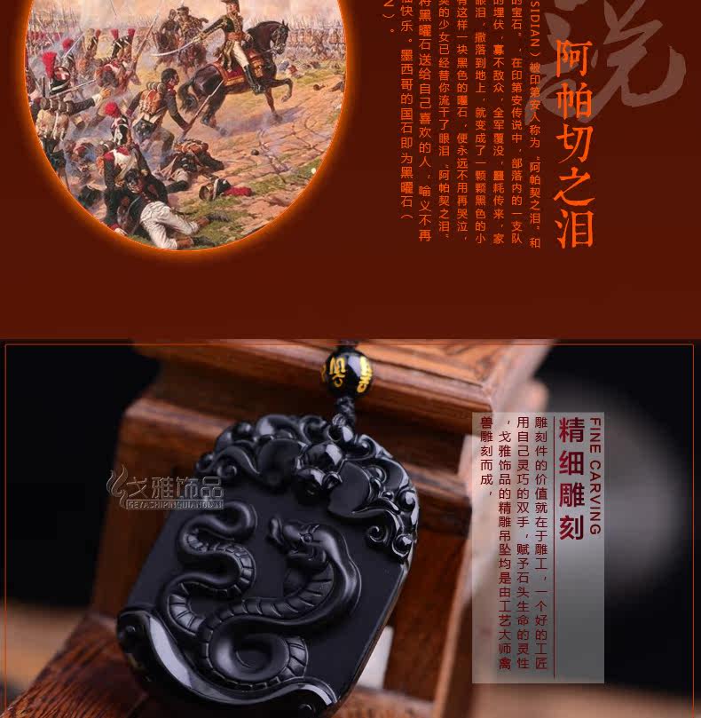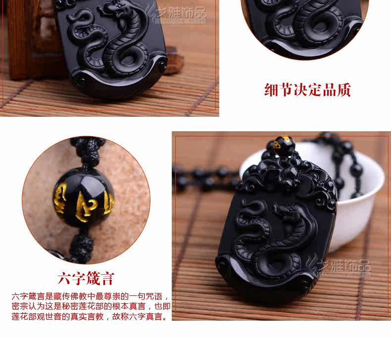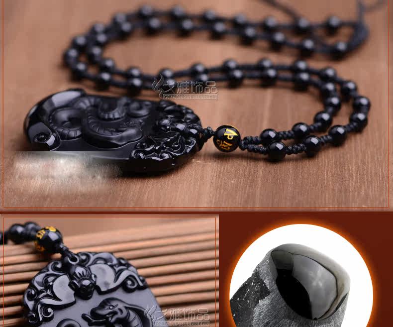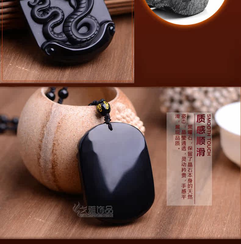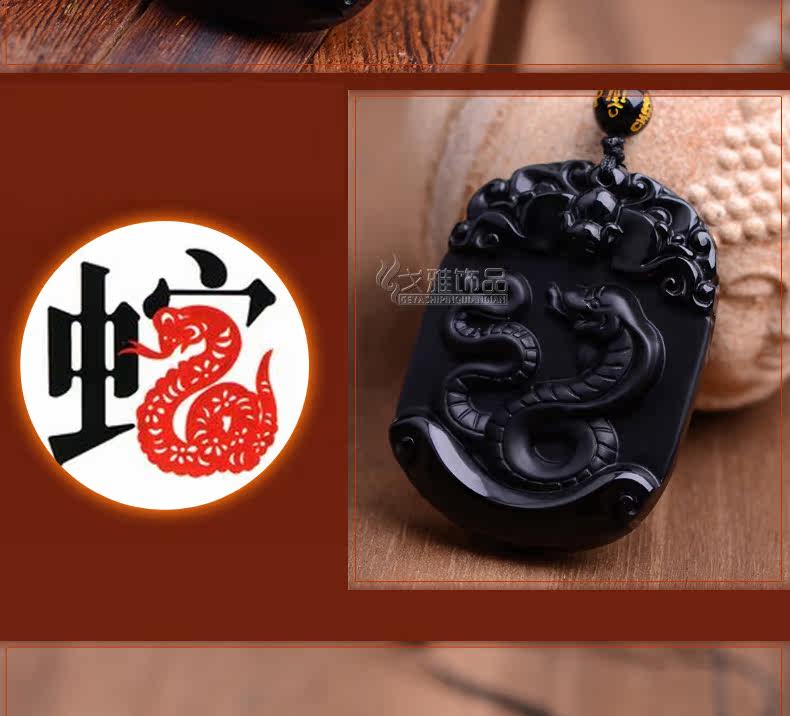 天然黑曜石生肖蛇吊坠十二生肖吊坠男女吉祥物朱雀献瑞