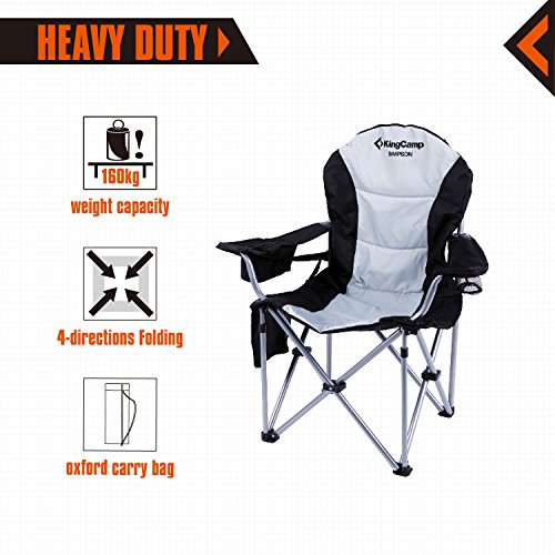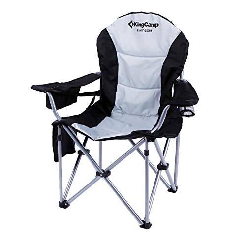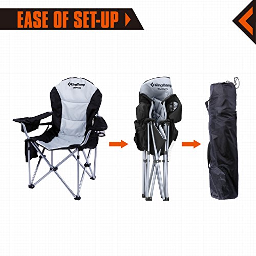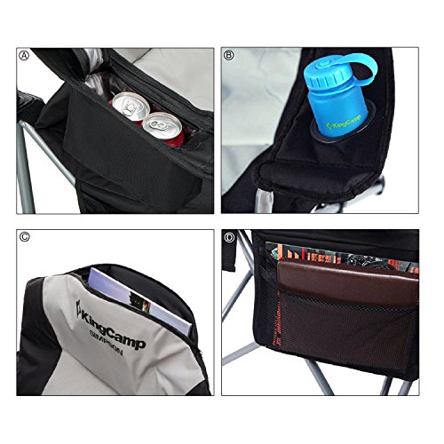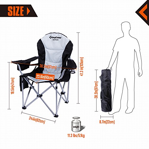 KingCamp Folding Quad Chair Lumbar Back Support Light Weight Portable Deluxe Padded Oversize with Cooler and Armrest for Beach Camp, Carry Bag Included