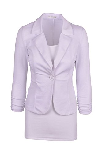 Binding : Apparel Product Description This Fashion Boomy Womens Solid Colors Blazer casual and office blazer jacket suitable for work or everyday. Versatile fashion/casual blazer suitable for work or everyday casual available in black and white and new spring/fall colors. Designed to be lightweight for casual wear even in hotter months in spring and summer, as well as year round, an alternative to thicker and formal blazers. *Sizing runs small. Please check measurements before purchasing to ensure best size* Approximate Measurements (Measured flat down in Inches) Small Bust (Armpit to Armpit): 15 1/2 Shoulder (Shoulder seam to shoulder seam): 13 1/2 Length (Top of collor to bottom): 21 1/2 Sleeves (Single sleeve from top seam to end): 17 1/2 Medium Bust (Armpit to armpit): 16 Shoulder (Shoulder seam to shoulder seam): 14 1/2 Length (Top of collor to bottom): 22 Sleeves (Single sleeve from top seam to end): 18 Large Bust (Armpit to armpit): 16 1/2 Shoulder (Shoulder seam to shoulder seam): 15 Length (Top of collor to bottom): 22 1/2 Sleeves (Single sleeve from top seam to end): 18 1/2 1X Bust (Armpit to armpit): 18 1/2 Shoulder (Shoulder seam to shoulder seam): 15 1/2 Length (Top of collor to bottom): 23 Sleeves (Single sleeve from top seam to end): 19 1/2 2X Bust (Armpit to armpit): 19 1/2 Shoulder (Shoulder seam to shoulder seam): 16 Length (Top of collor to bottom): 24 Sleeves (Single sleeve from top seam to end): 20 3X Bust (Armpit to armpit): 21 Shoulder (Shoulder seam to shoulder seam): 17 1/2 Length (Top of collor to bottom): 24 1/2 Sleeves (Single sleeve from top seam to end): 20 0