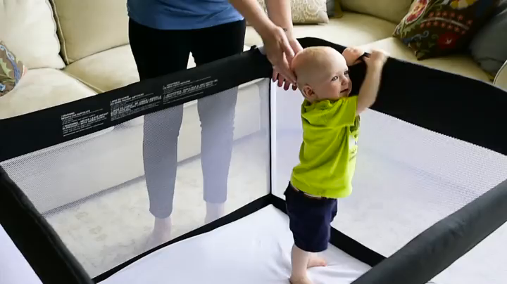 With over 10 square feet of play space, the new Room2 has edge to edge mesh windows that provide great views for you - and your baby