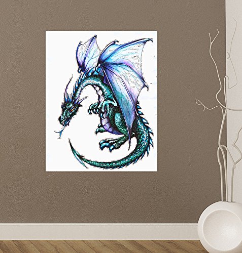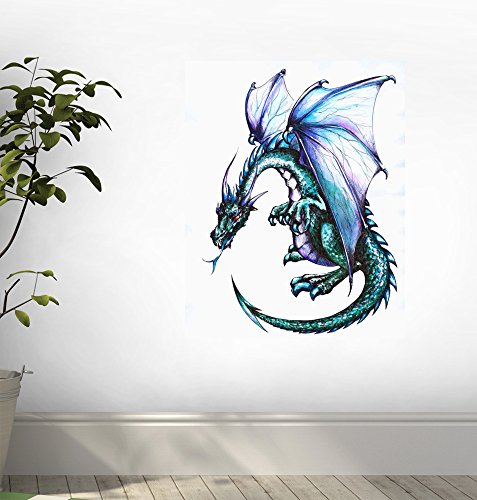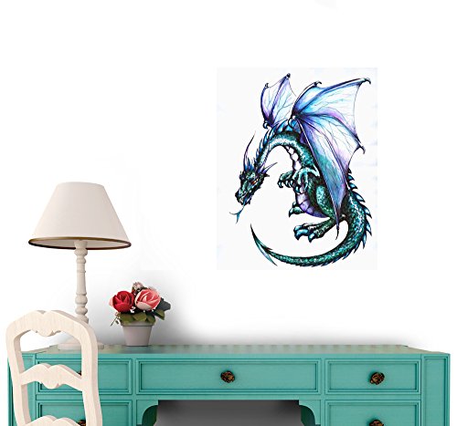 Blue Dragon Wall Decal - 18 inches x 14 inches - Peel and Stick Removable Graphic